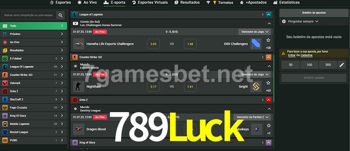 O 789Luck oferece uma grande seleção de opções de apostas em e-sports com probabilidades competitivas